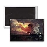 ✚✚✚ Art247 - A Naval Engagement (oil on canvas) by Philip.. - Aimant de réfrigérateur, 7,5 x 5 cm - gros bouton aimanté - aimant