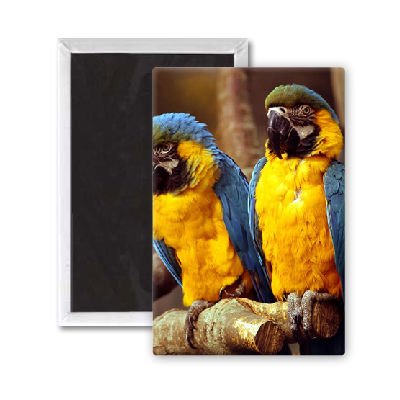 Art247 - A pair of macaws perched on a branch.. - Aimant de réfrigérateur, 7,5 x 5 cm - gros bouton aimanté - aimant? Art247 - A pair of macaws perched on a branch.. - Aimant de réfrigérateur, 7,5 x 5 cm - gros bouton aimanté - aimant?